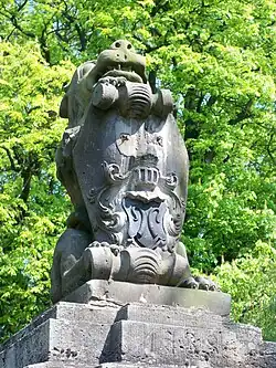 Schlossportal, Detail mit Wappen und Jahreszahl „1638“