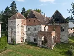Das Herrenhaus ist äußerlich noch weitgehend original im Zustand der Renaissance erhalten. Es ist ein zweiflügeliger Bau mit reich verzierten Volutengiebeln und Schindeln gedeckt. Das Gewölbe im Erdgeschoss und die Portale sind erhalten geblieben. An der Fassade sind Reste von Sgraffito-Verzierungen erhalten. Daneben befinden sich ein Turm, ein Gesindehaus und Reste eines Parks. Am gegenüberliegenden Ufer der Landecker Biele steht eine Statue des böhmischen Landesheiligen Johannes Nepomuk aus dem Jahr 1732.[2]
