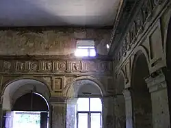 Beim Dacheinsturz 1982 wurden auch die Geschossdecken mit ihrem Stuck zerstört. Die wertvollen illusionistischen Wandmalereien im Festsaal sind dadurch fast völlig verloren gegangen. Es ist vermutlich nur den sehr starken Mauern (1,43 m unten und 1,08 m oben) zu verdanken, dass der Bau eine lange Zeit des Leerstandes wenigstens als Ruine überdauert hat.