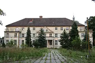 Für 1302 ist eine Burg der Visen belegt. 1802 ist ein Gutshaus der Flemming beschrieben, das ein eingeschossiges Gebäude war. 1830 ließ Karbe ein neues Gutshaus errichten. Der heutige Bau geht auf das Jahr 1910 zurück und wurde nach Plänen von Korff errichtet. Nach Vertreibung aller Deutschen aus der Region nutzte die polnische Armee, danach Umsiedler und ab 1947 eine Staatsgut (PGR) das Anwesen. 1956 wurde der Bau von der pommerschen Volksuniversität genutzt, danach zog ein Waieneheim ein. Der Bau wurde 1973–1978 erheblich verändert.