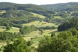 Besonders schutzwürdig ist das Vorkommen des Schmetterlings Dunkler Wiesenknopf-Ameisenbläuling, dessen Raupen sich in frühen Entwicklungsstadien ausschließlich von den Blütenköpfen des Großen Wiesenknopfs ernähren. Im Fließgewässer sind die Bachforelle und das gefährdete Bachneunauge heimisch.[4] Entlang der Bachläufe wurden außerdem Wasseramsel, Teichrohrsänger, Eisvogel sowie die Blauflügel-Prachtlibelle beobachtet.[7]