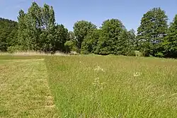 Das Grünland besteht aus Tal-Glatthaferwiesen mit den typischen Arten Gewöhnlicher Glatthafer, Wiesen-Labkraut, Wiesen-Pippau, Wiesen-Glockenblume und Wiesen-Storchschnabel. An feuchteren Stellen gedeihen Großer Wiesenknopf und Kuckucks-Lichtnelke. Die meisten Wiesen sind nährstoffreich bis überdüngt und relativ artenarm. Magere Flachland-Mähwiesen gibt es nur auf kleinen Flächen. Sie zeichnen sich durch Magerkeitszeiger wie Feld-Hainsimse, Magerwiesen-Margerite, Kleine Bibernelle und Knöllchen-Steinbrech aus.[4]