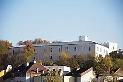 Die Lage auf einem Hügel lässt das Schloss als einheitlichen Baukörper über dem Stadtgebiet erscheinen. Die Anlage bildet ein Viereck und ist zweigeschoßig, vom trapezförmigen Innenhof aus lässt sich kaum die ursprüngliche Bauform erahnen. Der Bau hat zu einem großen Teil die ursprüngliche Größe zu Beginn der Neuzeit behalten, ist aber um ein Stockwerk niedriger. Er enthält auch Baureste aus dem ersten Drittel des 13. Jahrhunderts, der frühesten Bauphase des Schlosses. Die Türme wurden in der ersten Hälfte des 19. Jahrhunderts erbaut und die Fassaden erneuert.