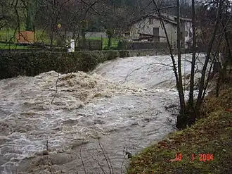 - am 24. Januar 2004, am Pegel Mazères eine Durchflussmenge von 500 m³/s