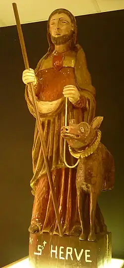 Der heilige Hervé (* um 520 ;† um 568 in Lanhouarneau) ist ein Heiliger der Bretagne[1]. Er wird von der katholischen und der orthodoxen Kirche als Heiliger anerkannt und lebte zur Zeit der bretonischen Einwanderung nach Aremorica. Er erscheint in der vita Hervei, einer späten Erzählung des 13. Jahrhunderts, die eines der zahlreichen Beispiele der bretonischen Hagiographie darstellt, in denen der Unterschied zwischen Geschichtsschreibung und Heiligenlegende nur schwer auszumachen ist.[2]