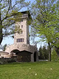 - ↑ Foto der Informationstafel am Turm, auf commons.wikimedia.org