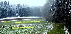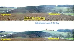 In alten Karten von 1820 wird der Bergrücken „Harzburg“ genannt. Doch in den neuen Katasterkarten ist von „Herzberg“, „Herzburg“ und „Erzburg“ die Rede. An den Abhängen entspringen mehrere Quellen, so dass auf der Bergkuppe nicht allzu tief geschachtet werden musste, um Brunnen anzulegen.
