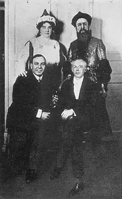 ![]() Judith (Olga Haselbeck) und Blaubart (Oszkár Kálmán) in der Uraufführungsproduktion 1918 vor dem Öffnen der siebten Tür | |