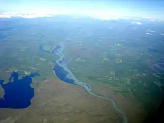 | Hestvatn (links), in der Bildmitte die Hvítá | ||