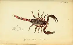 - ↑ Reginald Innes Pocock: Descriptions of two new genera of scorpions, with notes upon some species of Palamnaeus. In: Annals and Magazine of Natural History 1892, Serie 6, Band 9, S. 38–49 und Tafel III, hier S. 39–43, Digitalisat.