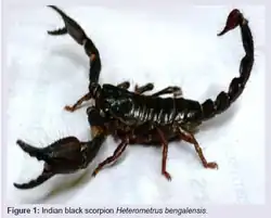 - ↑ Rinku Das, Sourav Ghosh and Antony Gomes: Indian Black Scorpion (Heterometrus bengalensis) Venom Action Neutralization by Indian Medicinal Plants in Experimental Animals. In: Journal of Toxins 2016, Band 3, Nr. 2, Artikel 7, Online.