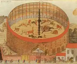 Das Wiener Hetztheater (eigentlich „k. k. privil. Hetzamphitheater unter den Weißgebern“ im heutigen 3. Bezirk Landstraße) existierte von 1755 bis 1796 hauptsächlich als Ort für inszenierte Tierkämpfe. Ähnliche Anlagen befanden sich zur Barockzeit u. a. auch in Berlin (Hetzgarten), Bratislava (Hetzhaus), Budapest (Hetzamphitheater nahe dem Waitzner Tor), Brünn (Amphitheater), Graz (Hetzamphitheater), Nürnberg (Fechthaus), Königsberg (Hetzgarten), Paris (Barrière de Combat), Prag (Hetzinsel), Moskau (Amphitheater vor dem Twerer Tor), Regensburg (Hetztheater am Steinweg) oder Warschau (Amphitheater).[1]