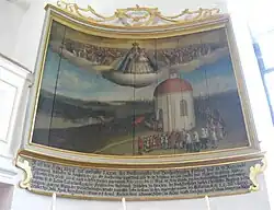 Die durch Blattornamentiken eingerahmten Ölgemälde im Gewölbe, die vor 1700 durch einen unbekannten Maler gestaltet wurden, zeigen vier Frauengestalten aus dem Alten Testament, die als Vorbilder für Maria gelten:[14]