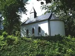 Der dreiachsige Saalbau mit halbrunder Apsis wurde der schmerzhaften Muttergottes geweiht. Über dem Portal befindet sich das ehemals über der Hoftür von Hof Heyer angebrachte steinerne Wappen der Reichsabtei St. Maximin. Die rundbogigen Fensteröffnungen sind mit ornamentalen Bleiglasfenstern geschlossen. Auf dem geschieferten Satteldach des Schiffes sitzt ein Dachreiter, der von einem Kreuz bekrönt wird.