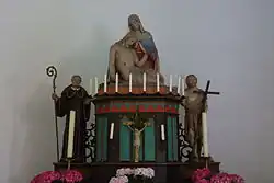 Der Altar von Seibert Maur aus Leudersdorf wird von einer Pietà dominiert, die aus einer Trierer Werkstatt stammt. Rechts und links stehen Statuen des hl. Leonhard und Johannes des Täufers. Die doppelflügelige Tür wurde im Zuge der Restauration durch den Schreiner Alois Daniels aus Bodenbach als Stiftung (zum Dank für unbeschädigte Rückkehr aus der Schlacht von Stalingrad und anschließender sowjetischer Kriegsgefangenschaft) angefertigt.