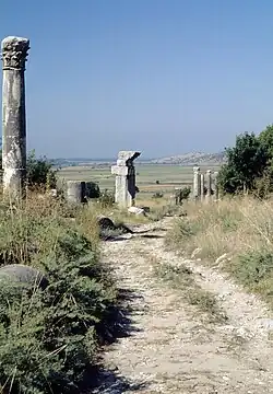 Die Hauptachse der Stadt war eine 200 m lange und 11 m breite west-östlich verlaufende Säulenstraße, von der noch Reste vorhanden sind, teilweise mit gut erhaltenen korinthischen Kapitellen. Südlich davon sind Reste einer Kirche zu sehen, weiter östlich war der Standpunkt eines Tempels der Artemis Perasia, wohl Zentrum des Kults. Im Osten davon sind noch etwa 15 Sitzreihen des Theaters zu sehen. Weiter im Süden verlief parallel dazu eine zweite, 300 m lange Säulenstraße, von der fast keine Reste erhalten sind. Dabei finden sich Relikte von Thermen und einer weiteren Kirche.