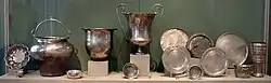 Einige der gefundenen Gegenstände zeigen starke Nutzungsspuren. Eingravierte Besitzernamen weisen darauf hin, dass die Geschirrbestandteile unterschiedlichen Vorbesitzern gehörten und das Tafelgeschirr offenbar aus verschiedenen Quellen zusammengestellt wurde. Es handelt sich überwiegend um augusteische Silberarbeiten, der Rest ist etwas älter.