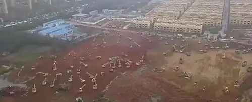 Im Zuge der COVID-19-Pandemie kam es im Jahr 2020 weltweit vermehrt zur Einrichtung von Hilfskrankenhäusern, da das normale Gesundheitssystem in vielen Staaten durch die große Zahl an Erkrankten überlastet worden war. So entstanden in der besonders betroffenen chinesischen Stadt Wuhan innerhalb weniger Tage das Huoshenshan-Krankenhaus und das Leishenshan-Krankenhaus. Auch nahe Moskau entstand ein komplett neues Krankenhaus für COVID-19-Patienten.[11] In weiteren Ländern wie Brasilien, Deutschland, dem Iran, Österreich, Spanien und den USA wurden beispielsweise Einkaufszentren, Sport- und Messehallen oder Stadien als Notkrankenhäuser genutzt.[12] In Bayern sollten als Reaktion auf die Krise Hilfskrankenhäuser in den 26 Rettungsdienstbezirken eingerichtet werden.[13][14][15][16][17][18] Ein Hilfskrankenhaus mit 1350 Betten im Messezentrum IFEMA in Madrid bestand vom 21. März bis zum 1. Mai 2020, in diesem Zeitraum wurden über 4000 Patienten behandelt.[19]