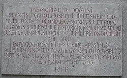 - ↑ 1973 fand man bei Ausschachtungsarbeiten in der Kirche Gebeine, welche man Franz Karl Josef Hillesheim zuordnete.