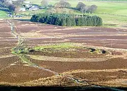 Im Inneren gibt es eine jüngere, runde Einhegung, die von einer niedrigen Rasenbank gebildet wird. Ein kleiner Cairn innerhalb des Südostquadranten ist damit verbunden.