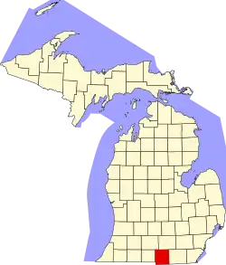 Das County liegt im äußersten Süden der Unteren Halbinsel von Michigan, grenzt im Süden an Ohio, mit der südwestlichsten Ecke an Indiana und hat eine Fläche von 1572 Quadratkilometern, wovon 22 Quadratkilometer Wasserfläche sind. Es grenzt im Uhrzeigersinn an folgende Countys: Jackson County, Lenawee County, Branch County und Calhoun County.