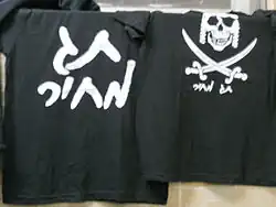 T-Shirts mit dem Schriftzug „Preisschild“. Der Schädel mit Schläfenlocken und Kippa sowie gekreuzten Schwertern wurde auch auf (schwarzen) Fahnen in Baladim zur Schau gestellt[1]