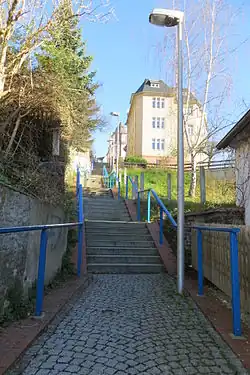 Über Jahrhunderte war der Leichenweg die kürzeste Verbindung zwischen Pohlitz und Greiz. Der unbefestigte und steile Weg war vor allem bei Regen oder im Winter sehr beschwerlich. Mit der Anlage der Cloßstraße 1895/96 entstand deshalb eine für Fuhrwerke befahrbare Verbindung zwischen beiden Orten. Da der kürzere Leichenweg auch weiterhin die bei Fußgängern beliebteste Verbindung war, wurde auf diesem ab 1901 die Treppenanlage errichtet. 1902 konnte der erste Abschnitt zwischen Oberer Silberstraße und Cloßstraße mit 155 Stufen fertiggestellt werden, 1908 der zweite zwischen Cloß- und Heynestraße mit 54 Stufen. Der untere Abschnitt wird von Wohnhäusern gesäumt, die ausschließlich über die Treppe erreichbar sind.