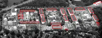 Ehemalige Kasernengebäude. Hier im Wankheimer Täle der nun mit dem Block 25 überbaute Exerzierplatz (Juli 2008) | |||