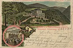 Das in den 1890er Jahren von Peter Laufs als „Sommerlokal“ bei Grafenberg erbaute dreigeschossige Restaurant und Hotel wurde im April 1894 von seinem ersten Betreiber, dem aus Bonn stammenden Gastwirt Franz Waldbrül, eröffnet.[1] Mit Kaffee-, Bier- und Weinausschank, warmer Küche, Sälen für Gesellschaften, 20 Hotelzimmern und einem gelegentlich angebotenen Musikprogramm entwickelte es sich zu einem „Hauptanziehungspunkt für Ausflügler“. Beworben wurde das Etablissement, das auch in etlichen Reiseführern genannt war, als „größtes Sommerlokal Düsseldorfs und Umgegend“. Als beliebter Aussichtspunkt verfügte es über eine weitläufige Veranda mit Dachterrasse sowie Gartenanlagen.