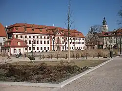 Blick über den „Platz der DSF“ zur Kurmainzischen Statthalterei (1957) -