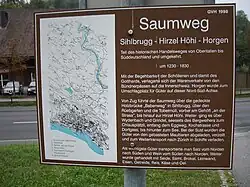 Der ehemalige Saum- und heutige Wanderweg von der Sust Horgen über die Hirzel Höhi nach Sihlbrugg ist als Kulturweg mit braunen Tafeln gekennzeichnet.