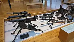 Im militärischen Bereich wird die Mechanisierung und Automatisierung des Krieges anhand der verwandten Waffen dokumentiert: In den Vertiefungen im Boden sind Maschinengewehre, Minenwerfer, kleine Geschütze, Panzerfäuste und Handgranaten ausgestellt. Große Waffen wie Flugzeuge oder große Geschütze sind nur im Modell oder auf Bildern zu sehen. In Videofilmen wird der Einsatz der ersten Panzer gezeigt. Verschiedene Arten von Gasmasken zeigen die Entwicklung des Schutzes gegen den fortschreitenden Gaskrieg. Mechanische Selbstschutzgeräte sollen die Soldaten vor feindlichem Beschuss schützen. In einem Koffer ist das vollständige „Operations-Besteck“ eines französischen Feldarztes zu sehen.