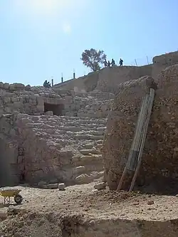 In Erdrutschen abgelagerte Sedimente im vollständig verschütteten Theater von Beit Ras (das antike Capitolias)
