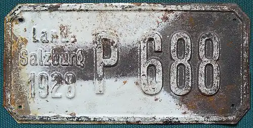 Kennzeichen von 1928 – fraglich: Salzburg hatte das Erkennungszeichen „D“[2]