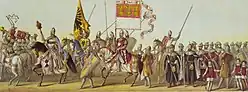 - ↑ a b c d Tony Avenarius: Historischer Festzug, Erläuterungen zu den Tafeln VII bis XIV.