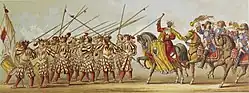 - Helden der Kölner Stadtgeschichte, Bogenschützen, Kampfwagen der Schlacht von Worringen (Albert Baur)