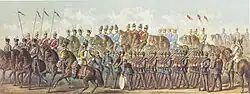 - Ritter, König Wilhelm von Holland und Kardinal Capocci mit Gefolge (Ernst Roeber, datiert August 1884)