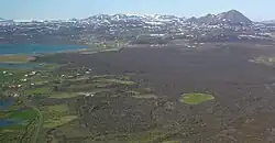 Hlíðarfjall befindet sich ca. 5 km nördlich des Dorfes Reykjahlíð und weitere 5 km südlich der Caldera des Zentralvulkans Krafla.