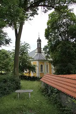 - Kirche der hl. Dreifaltigkeit am südwestlichen Ortsrand, sie wurde als Kapelle auf einem erhöhten Platz über dem Dorf errichtet. Erstmals erwähnt wurde sie 1651. Johann Anton Hochberg von Hennersdorf ließ die bis dahin vom Schlosskaplan versehene Kapelle 1783 zur Kirche umbauen und 1787 einen Lokalisten einsetzen. Durch kaiserlichen Erlass wurde das Interieur der 1783 aufgehobenen Klosterkapelle des hl. Antonius in Pičín der Herrschaft Hluboš zugesprochen und in die neue Kirche verbracht. 1855 wurde sie zur Pfarrkirche erhoben. Nach der Fertigstellung des Schlossumbaus ließ Karl Fürst zu Oettingen-Wallerstein am 28. März 1877 die alte Kirche bis auf die Mauern des Turmes abbrechen und ein neues Schiff errichten. Bereits am 4. November 1877 wurde die Kirche wieder geweiht.