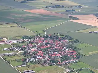 Am 20. März 1143 wurde der Ort in einer Urkunde erstmals aktenkundig erwähnt.[2] Auch dieses Dorf hat sich aus einer slawischen Ansiedlung weiterentwickelt. Es ist von jeher eine Agrargemeinde, die 821 ha bewirtschaftet. Der Ort gehörte einst zu kirchlichen Besitzungen der Stadt Erfurt. Danach folgten die Grafen von Orlamünde sowie weitere Besitzer. Mittelbauern waren im Dorf ansässig. In der Zeit der DDR-Agrarpolitik wurden eine Sauen- und eine Milchviehanlage in den 1960er-Jahren gebaut. Nach der Wende fand man schnell neue Formen der Zusammenarbeit.[3]