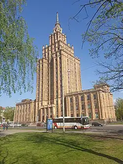 Das Gebäude beherbergt sowohl die Lettische Akademie der Wissenschaften als auch zahlreiche Sendeanlagen für UKW und TV mit entsprechenden Sendeantennen auf seiner Spitze.