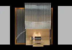 Der Orgelbauer Andreas Schiegnitz (Grünstadt) erbaute 2014 eine neue große Saalorgel, die im Konzertsaal der Hochschule aufgestellt worden ist.[9] Das Instrument hat 41 Register auf drei Manualwerken und Pedal. Im Hauptwerk ist auch ein mitteltöniges Register untergebracht. Die Tontrakturen sind mechanisch, die Registertraktur elektrisch. Im Jahr 2016 wurde die Orgel mit dem Staatspreis des Landes Rheinland-Pfalz ausgezeichnet.[10] Die Disposition lautet wie folgt:[11]