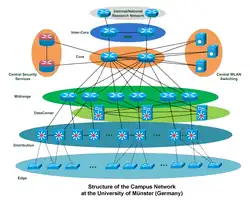 - ↑ R. Vogl, M. Speer, N. Gietz, L. Elkemann: Netzkonzept, Netzentwicklungsplan, Betriebs- und Managementkonzept, Personalsituation. ZIV Universität Münster, 7. April 2010.