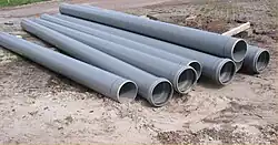 HT-Rohre werden nicht im Freien oder im Erdreich (Grundrohr) verwendet, hier kommt das robustere, meist orangebraune Kanalgrundrohr (KG-Rohr) zum Einsatz.