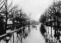 Die Sturmflut in der Nacht vom 16. auf den 17. Februar 1962, die durch den Orkan Vincinette ausgelöst wurde, traf auch die Stadt Bremen. 50 Quadratkilometer wurden innerhalb weniger Stunden überschwemmt.[10] Dies entspricht etwa 15 Prozent des Stadtgebietes.
