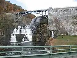 Bei Staumauern wird das Hochwasser häufiger als bei Staudämmen über das Sperrwerk abgelassen. Das überschüssige Wasser fließt bei dieser Art der Hochwasserentlastung an vordefinierten Stellen über die Mauerkrone, oder es sind in der Mauer Öffnungen vorgesehen. Auf der Luftseite der Mauer wird das Wasser dann heruntergeführt und gelangt im Bereich des Mauerfußes in das Tosbecken.