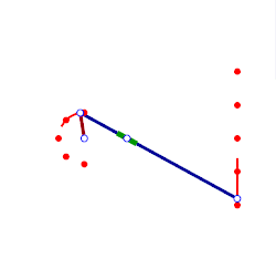 Während der Gleiter A sich nach unten bewegt, bewegen sich die Punkte P auf den blauen Kurven (man kann sich auch vorstellen, dass an den Punkten P blaue Farbstifte befestigt sind). Die Punkte P, welche von A weiter entfernt sind als der Drehpunkt O von Fixpunkt Q, bilden dabei eine Schleife.