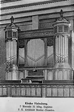Die Orgel ist ein Werk der Gebrüder Jehmlich von 1901 mit 32 Registern auf zwei Manualen und Pedal, das 1982 klanglich verändert wurde. Sie besitzt mechanische Kegelladen. Eine Sanierung ist für 2022/2023 geplant.[2][3] Die Disposition lautet wie folgt: