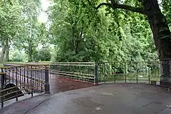 - ↑ Anmerkung: Weil der Marmorbrunnen häufig beschädigt wurde, befindet sich heute nur noch ein Duplikat im Park.