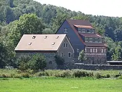 Einschließlich des zweigeschossigen Mühlengebäudes im Nordwesten (altes Bruchsteinuntergeschoss mit Eckquaderung, rundbogigen Kellerfenstern und gewändeten Fenstern, verputztes Fachwerkobergeschoss, steiler seitlich verschieferter Giebel), den Resten der Mühleneinrichtung am Bachlauf, der alten Bruchsteinscheune im äußersten Nordostwinkel sowie des Mühlbachs und der angrenzenden Freiflächen ist die Hofanlage als Gesamtanlage ein Kulturdenkmal.